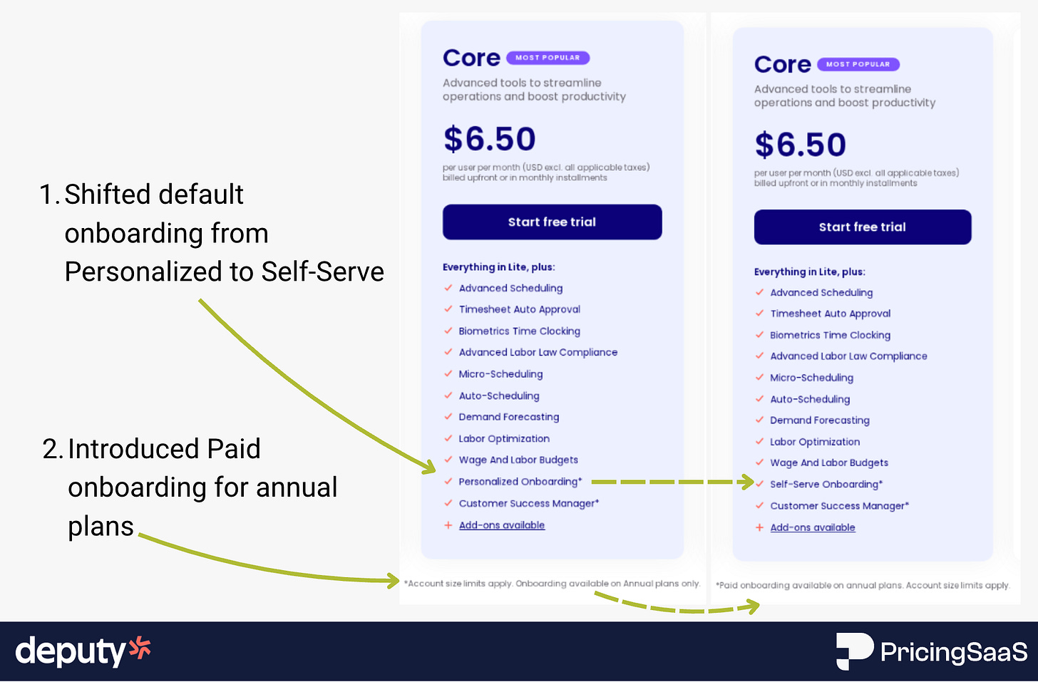 Deputy changed default onboarding from personalized onboarding to self-serve. At the same time, it introduced paid onboarding as an option for annual customers.