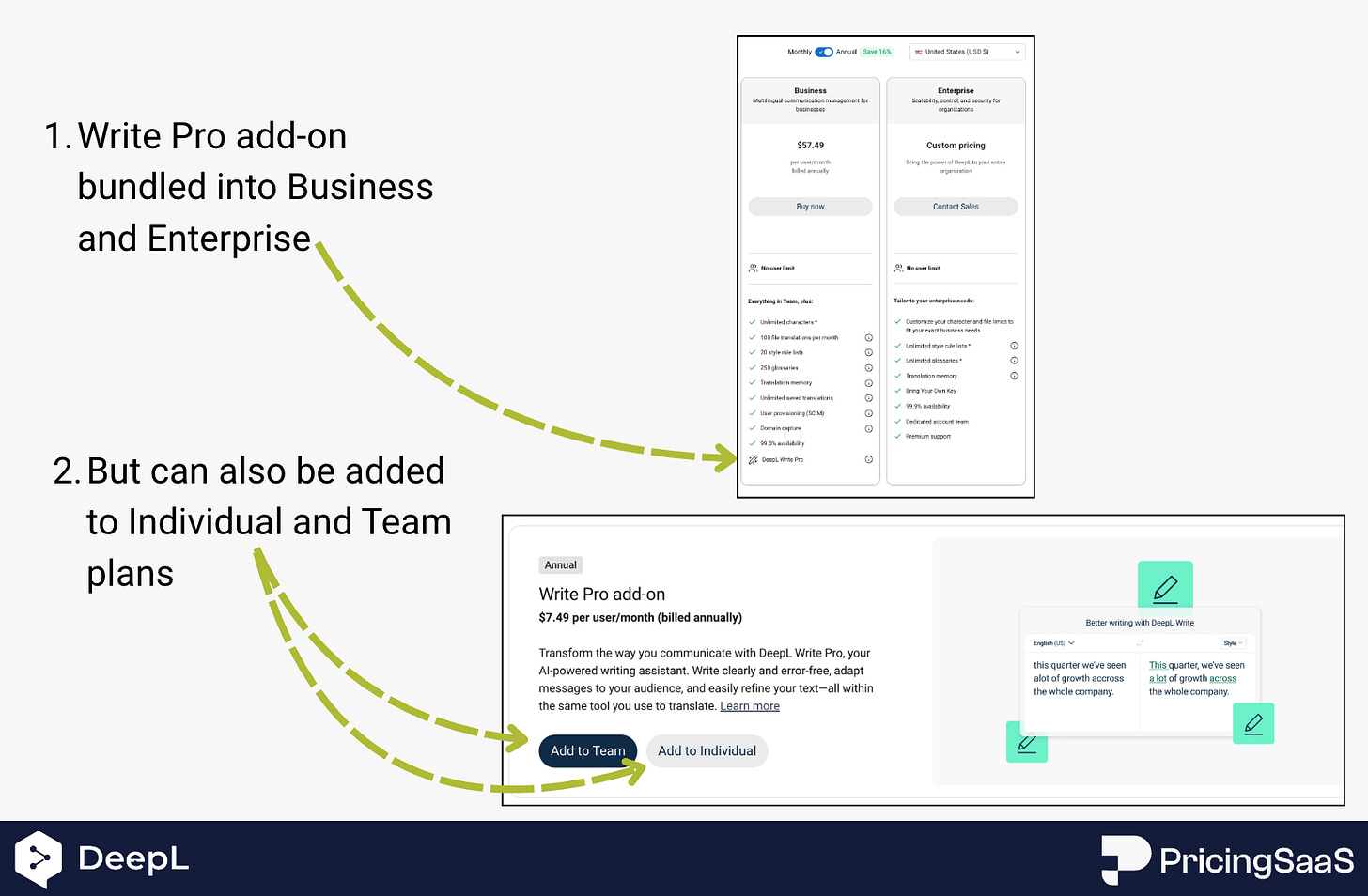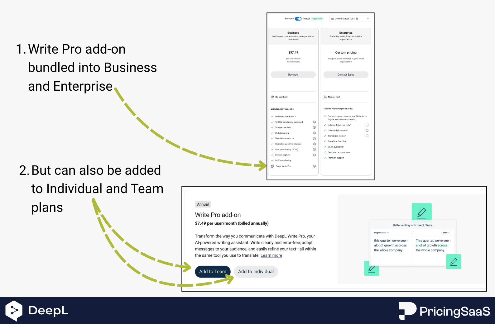 DeepL bundled its Write ProAI add-on into the Business plan, but didn’t fully kill the add-on. Individual and Team customers can still purchase Write Pro AI separately.