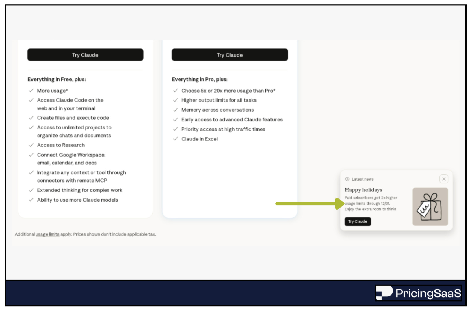 Anthropic boosted usage limits for paid users through the holidays. This functions as a discount for existing customers, and is a smart way to drive goodwill and retention.