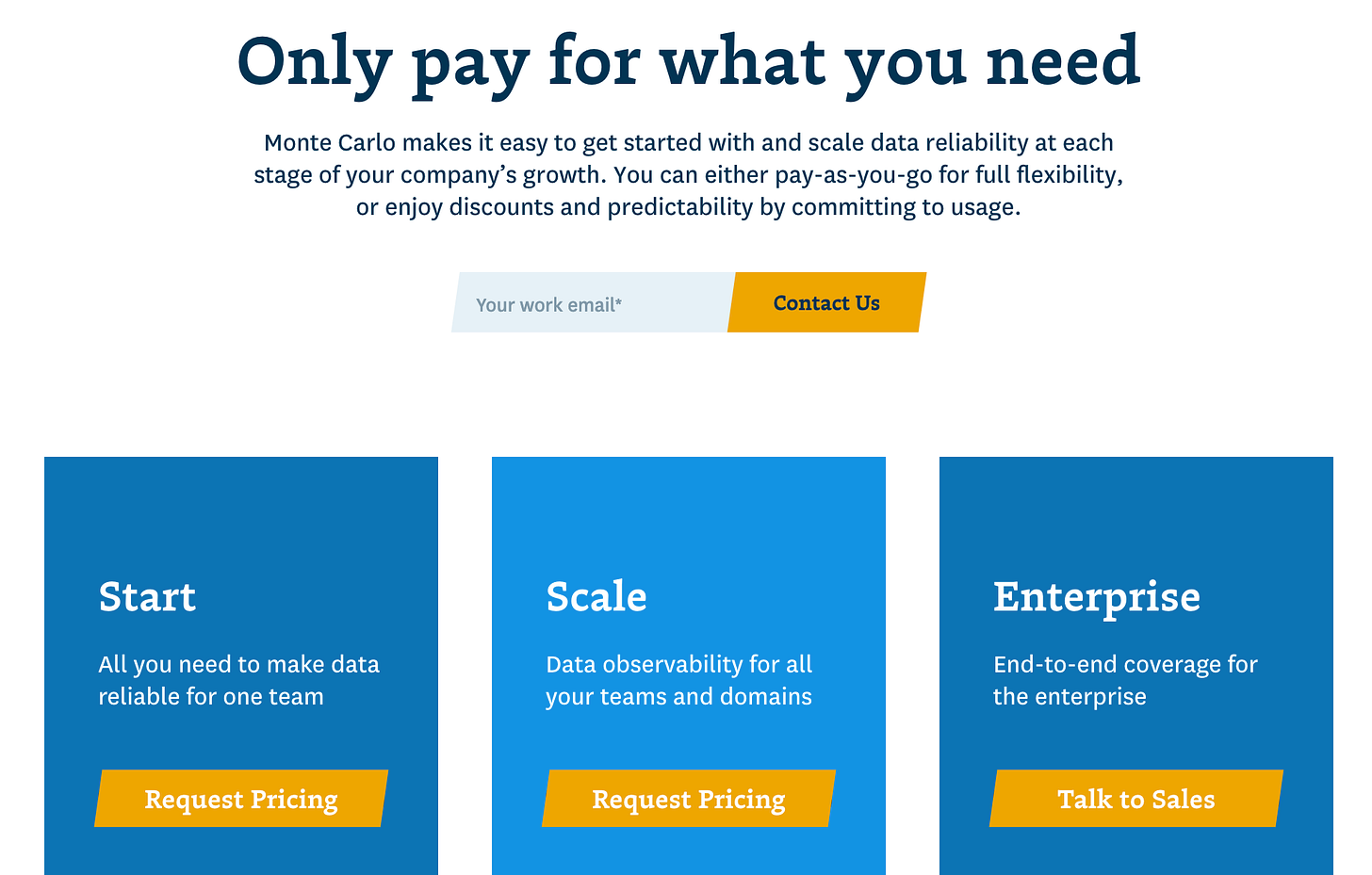 BDRs qualify prospects, and schedule discovery calls with AEs. That means building your pricing page to push visitors to raise their hand to learn more.
