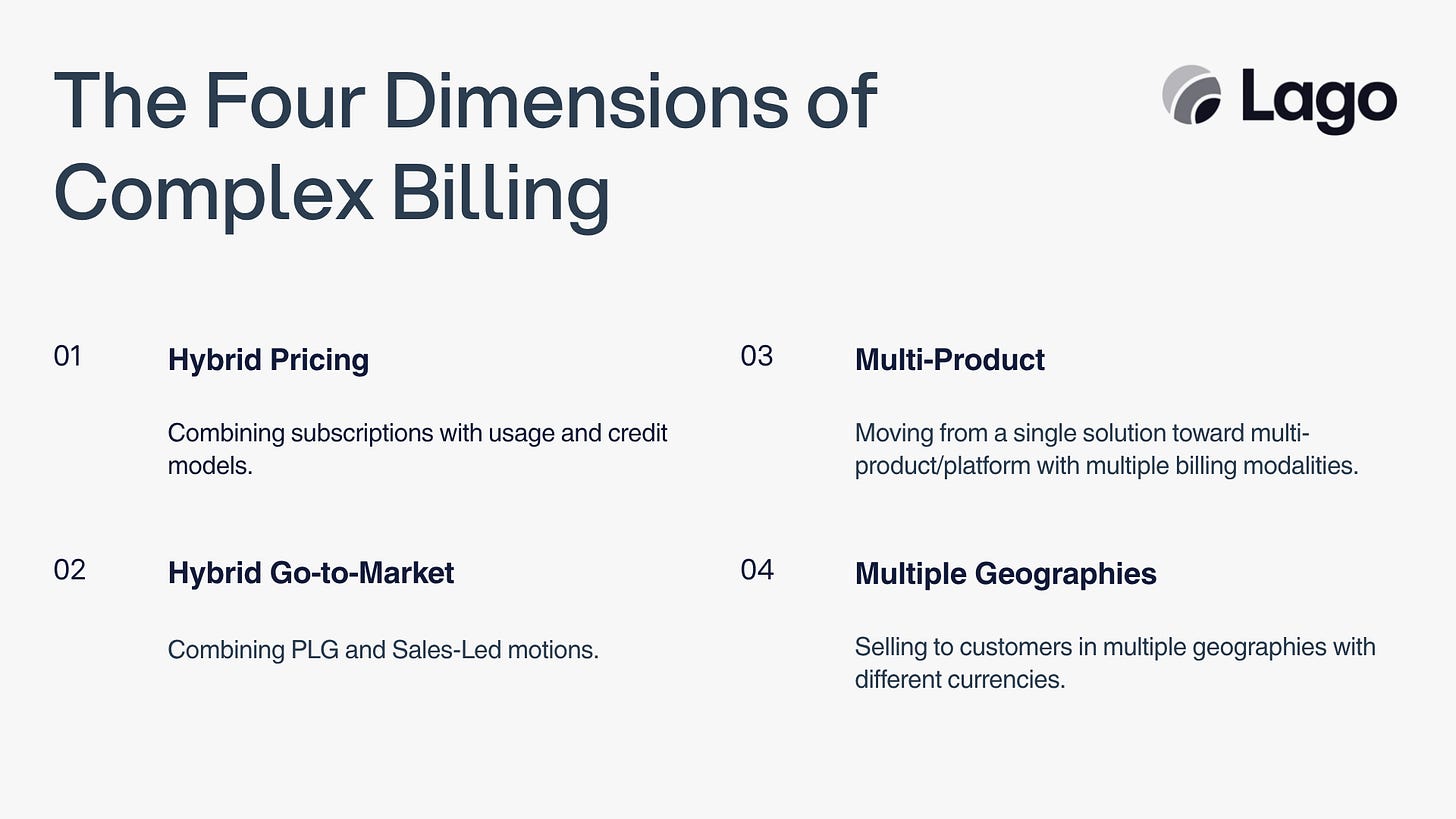 The irony? These complexities represent SaaS scaling best practices. Most SaaS leaders want to offer hybrid pricing, PLG plus sales-led growth, multi-product offerings and have a global presence.
