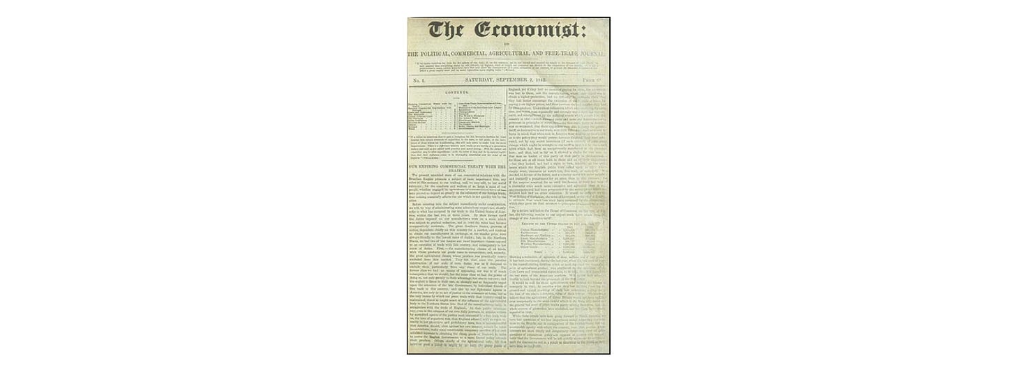 Building a successful business is hard enough, but lasting hundreds of years feels borderline impossible. In that context, it’s so impressive to me when a business can adapt and last. The Economist is one of those brands. James Wilson founded the newspaper in 1843 to “take part in a severe contest between intelligence,” and the first issue looks like the type of reading material that could have graced the bartop at the Warren Tavern: