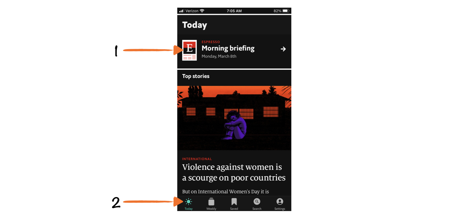 When you scroll to the bottom of the Today tab, which usually features 10-15 stories, you'll see a message that will feel familiar if you’ve used Espresso: You've caught up.