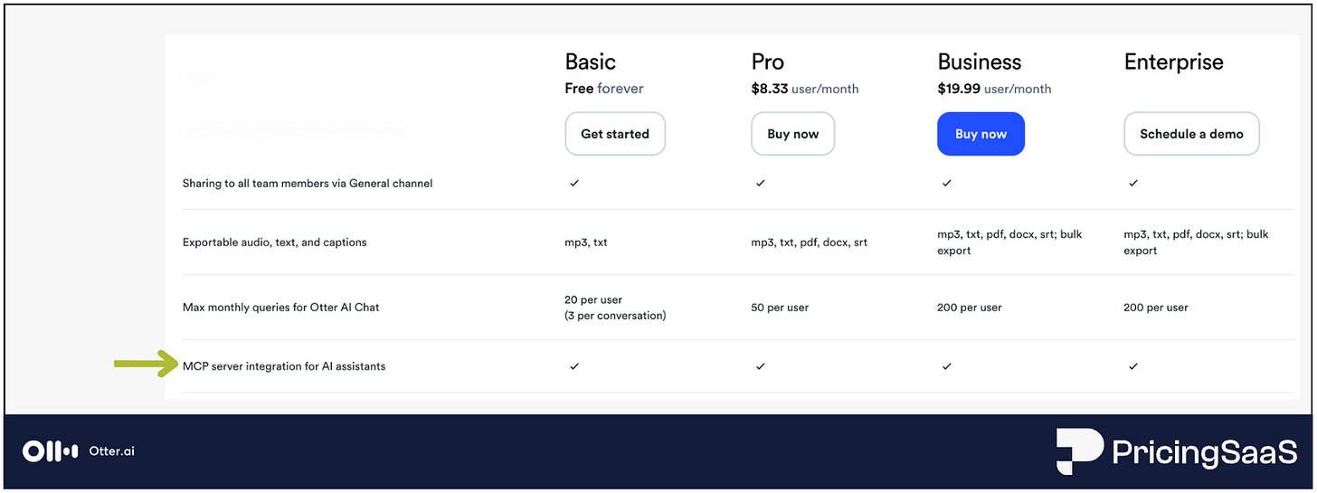 While Otter’s MCP doesn’t directly act as a monetization lever, it enables free users to get more out of the product, which indirectly drives usage, making it more likely users trip other usage limits.