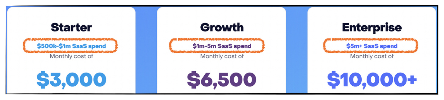 While I admire the commitment to keeping Vendr's pricing simple, and offering the same level of service for all customers, I asked Ryan if he ever felt concerned about tying price solely to SaaS spend. Since they're saving clients money on their SaaS spend, isn't there a perverse incentive at play where their success inherently works against them over time?